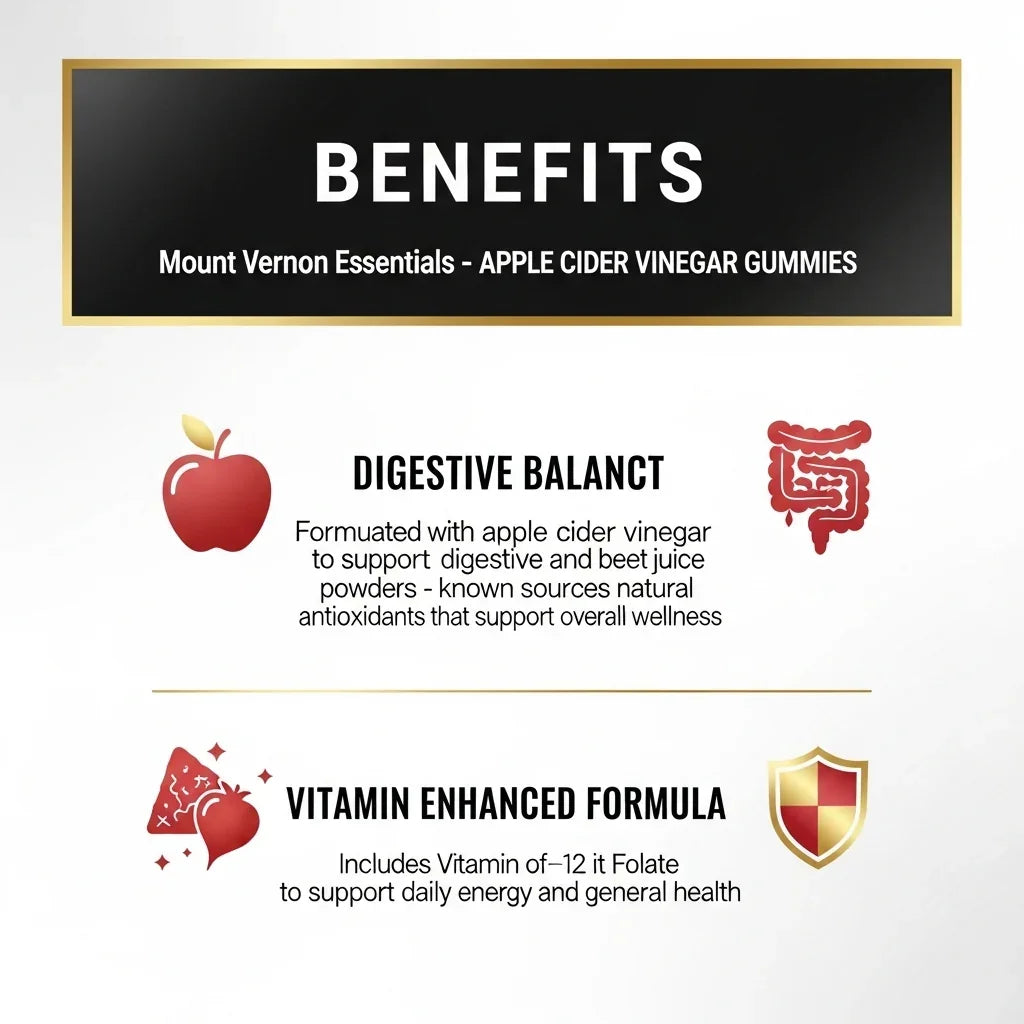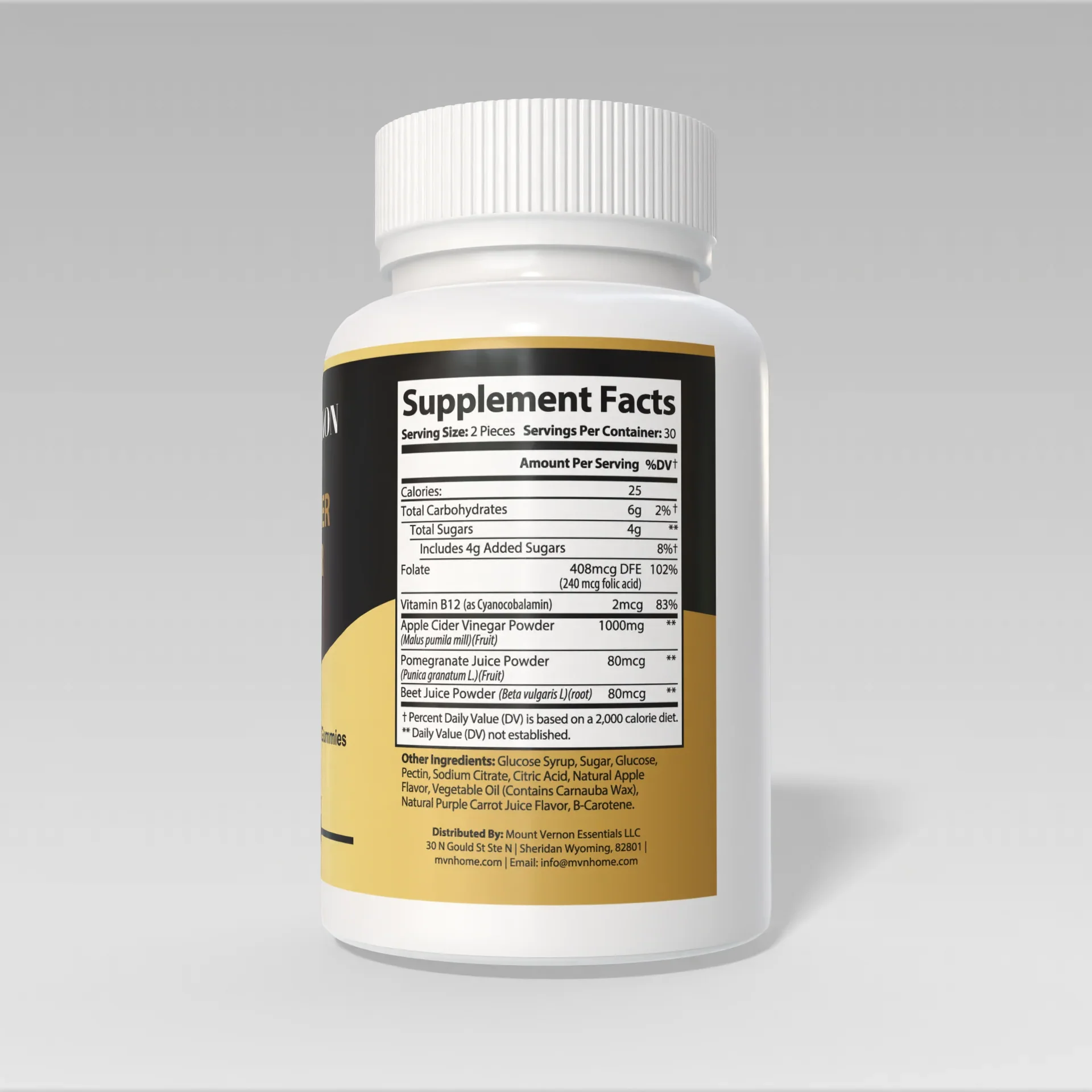 🍎 Mount Vernon Essentials Apple Cider Vinegar Gummies – 60 Count