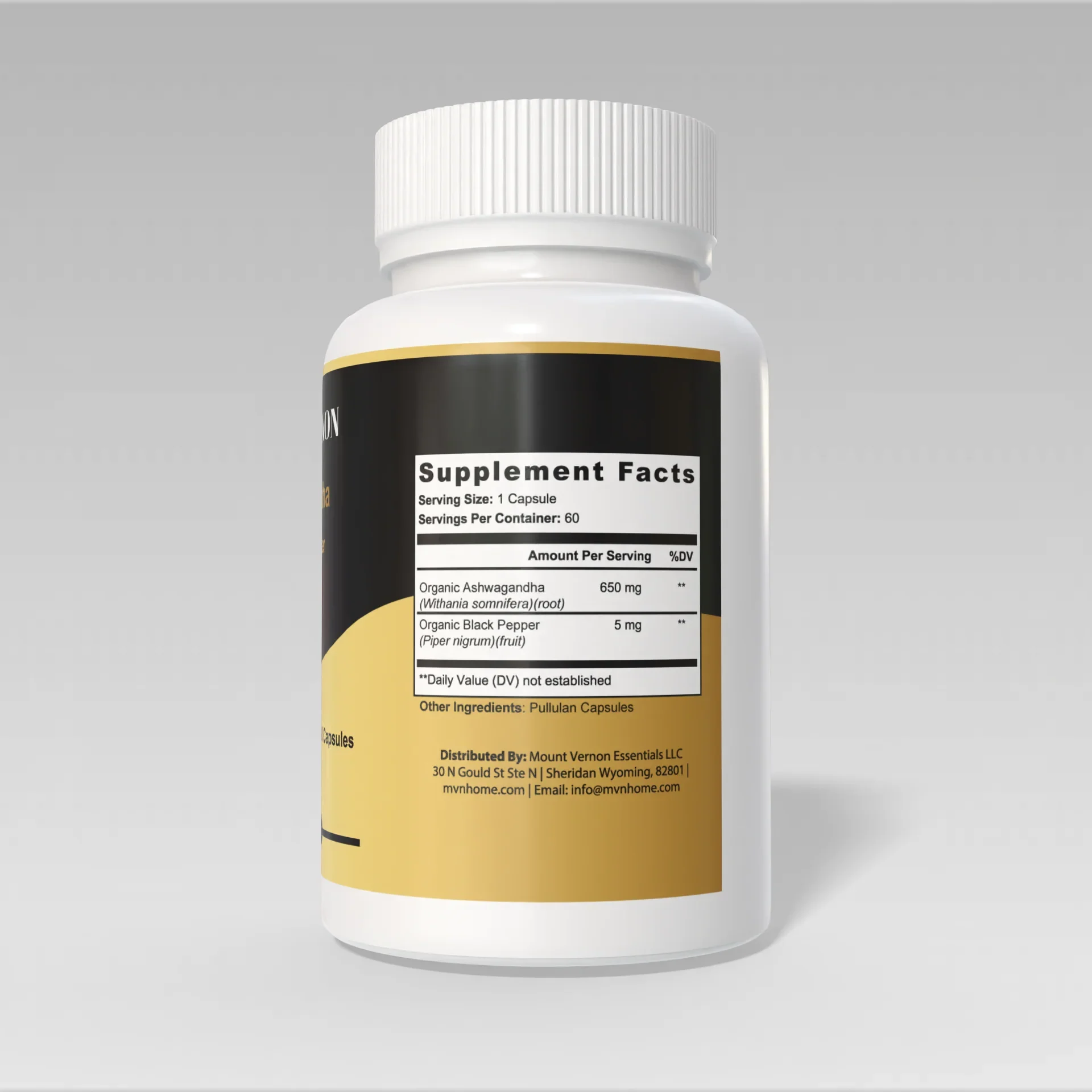 🌿 Mount Vernon Essentials Ashwagandha + Black Pepper – 60 Capsules