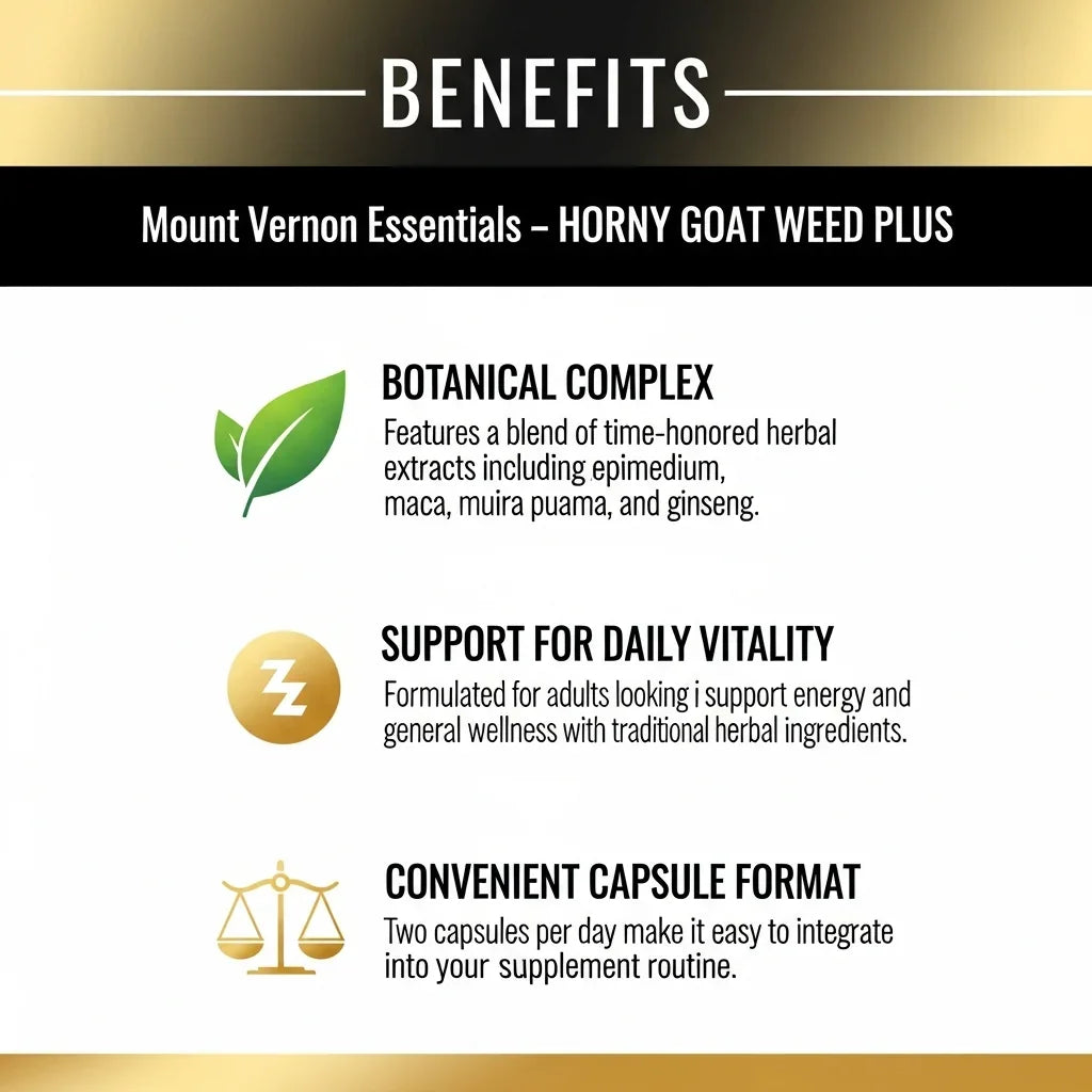 ⚡ Mount Vernon Essentials Horny Goat Weed Plus – 60 Capsules